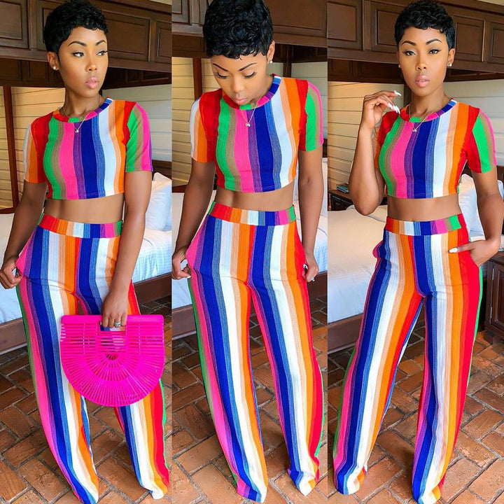 Y5120 wish European and American women's clothing fashion casual digital printing two-piece set