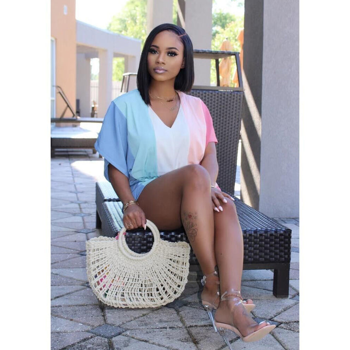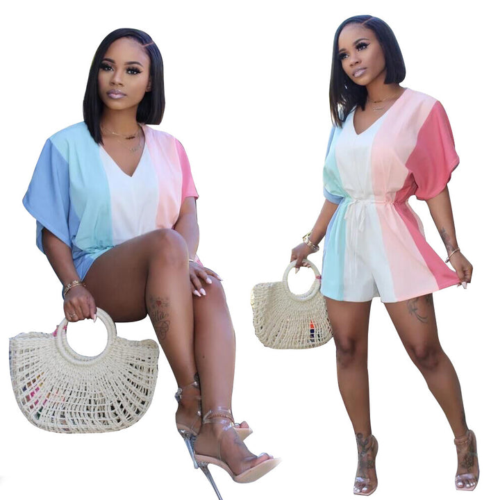 Y5150 Independent Station European and American women's clothing summer short-sleeved jumpsuit positioning printing