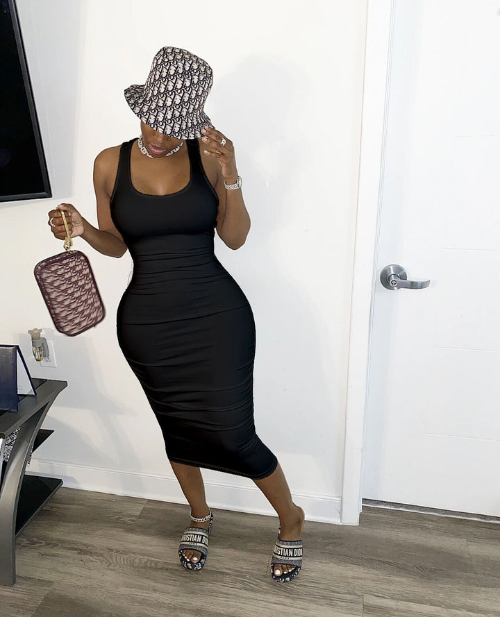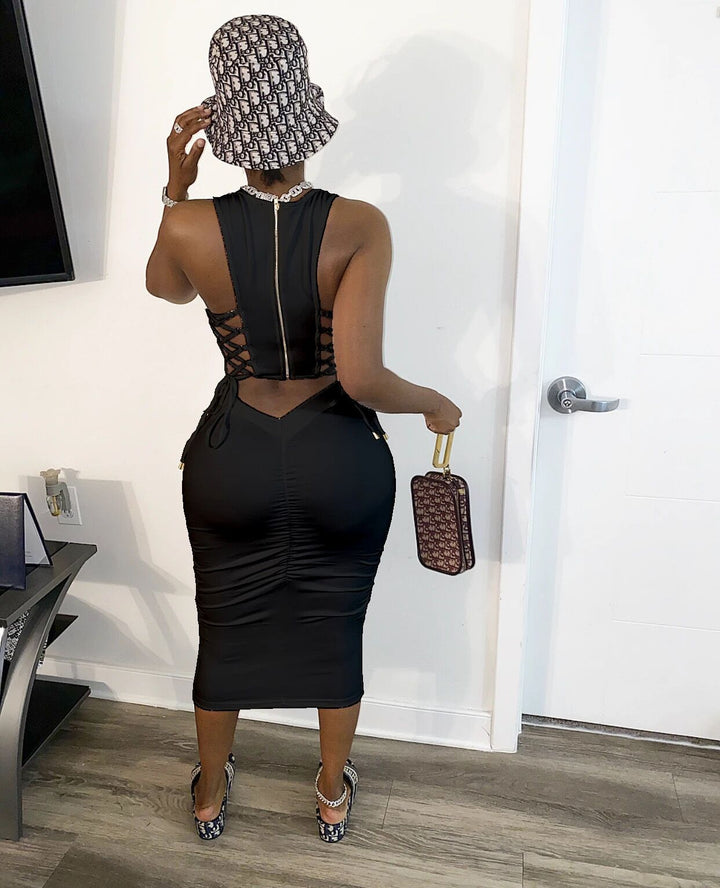 Y5151 Independent Station European and American fashion women's clothing sexy solid color zipper strap dress