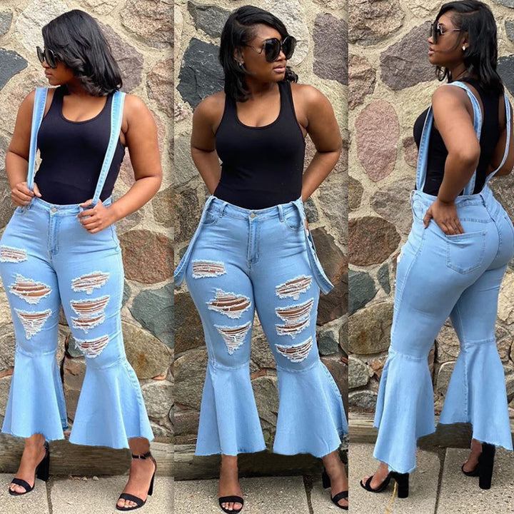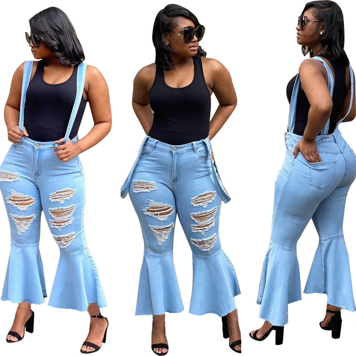Y5154 Independent Station European and American Fashion Casual Ripped Burn Flower Flared Jeans