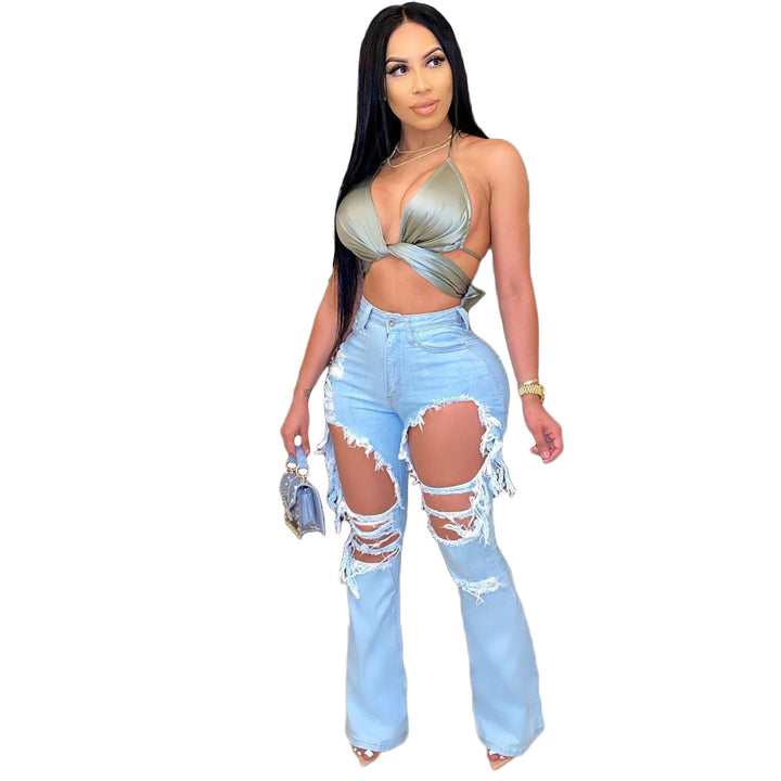 Y5165-1 , independent station, hot sale in Europe and the United States, hole washing, elastic, horn jeans