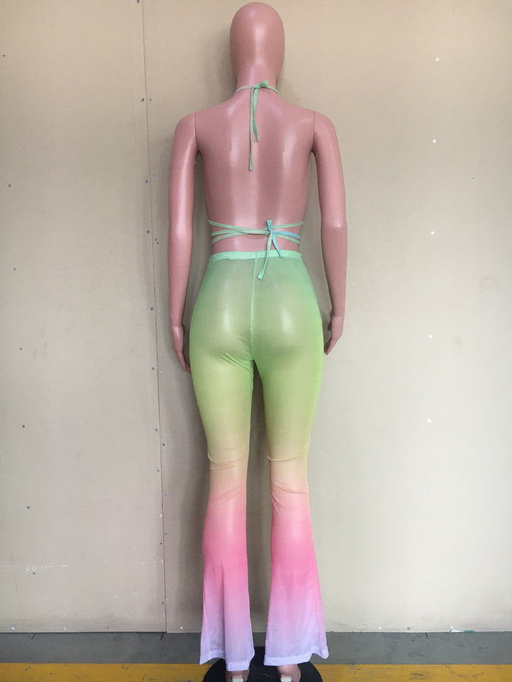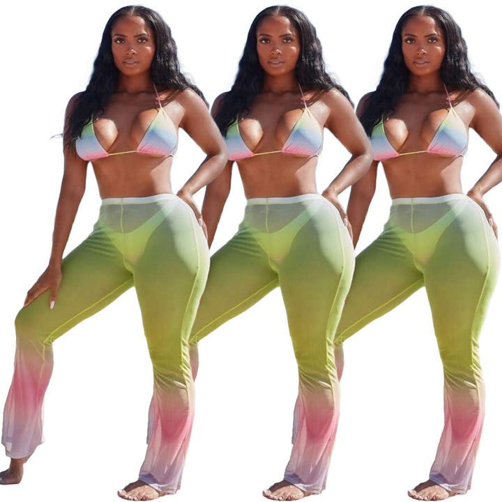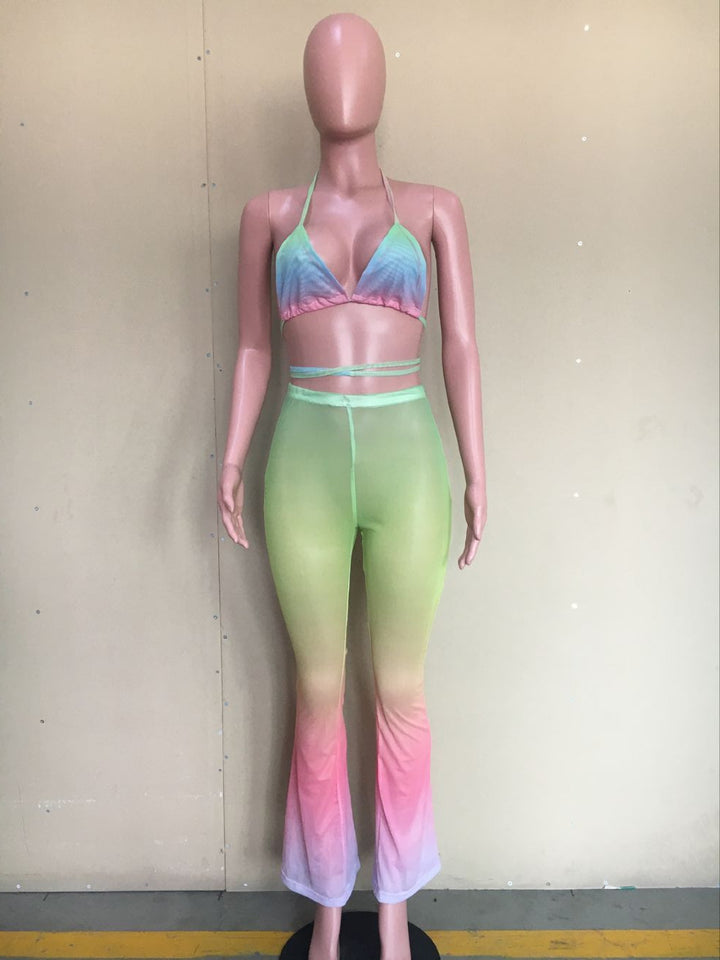 Y5185 , European and American sexy women's clothing, summer trend gradual change positioning printed swimsuit two-piece set