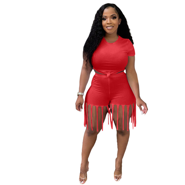 Y5193 , European and American women's clothing, fashionable and casual, solid color fringed two-piece set