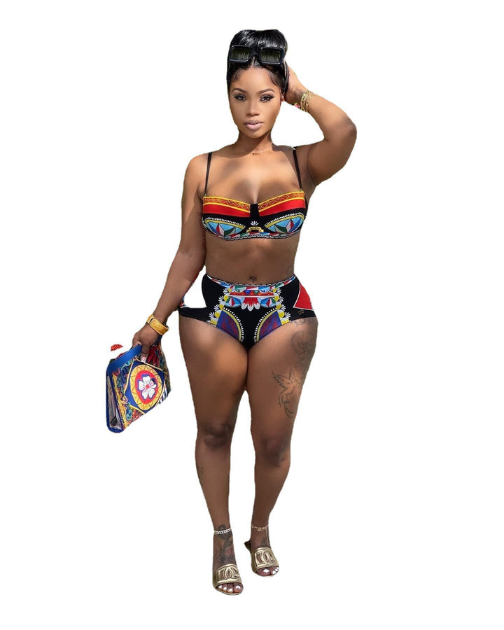 Y5224 European and American sexy digital high definition positioning printed bikini swimsuit two-piece set