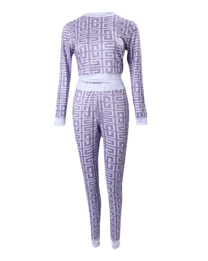 Y5237 autumn and winter European and American women's clothing fashion trend digital high definition printing sexy two-piece set