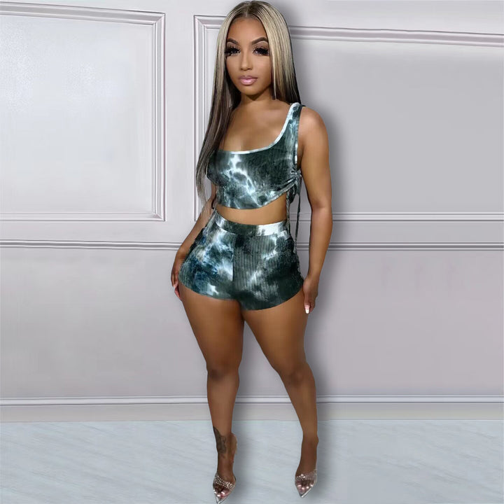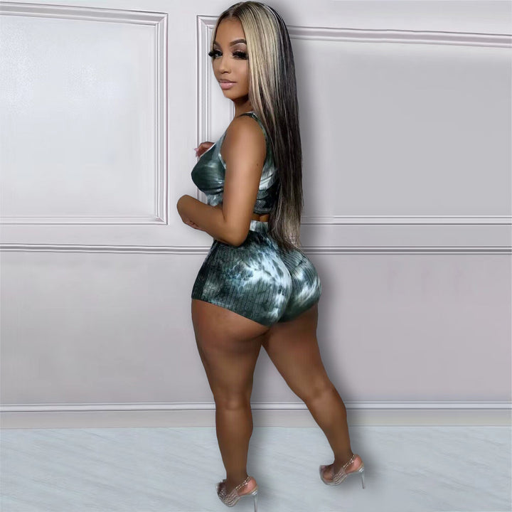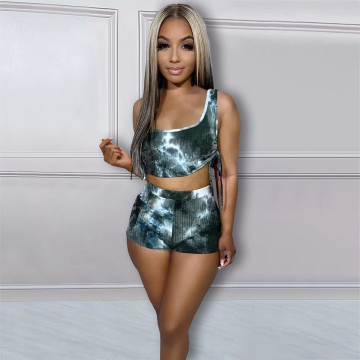 Y5250 summer, European and American women's clothing fashion, casual, pit strip printing, sleeveless, sexy, two-piece set