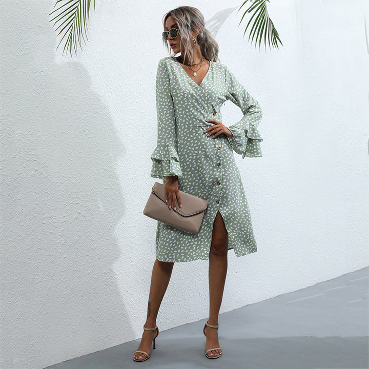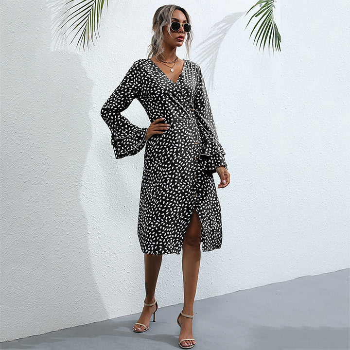 Yanxuan Independent Station Cross-border Foreign Trade Black A-shaped Dress Slim-fit Printing...