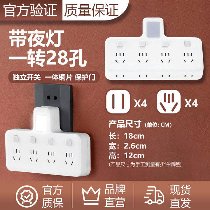 Yaqi Household Converter Socket Converter Travel All Copper One Turn Multi-purpose Hole Independent Switch Night Light Converter