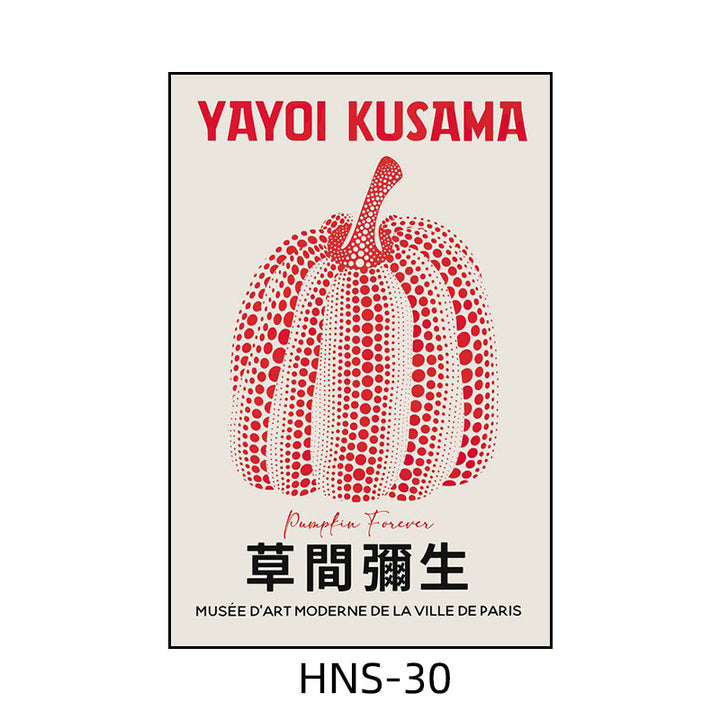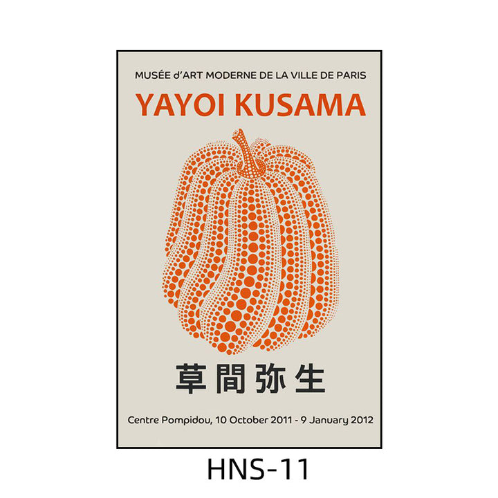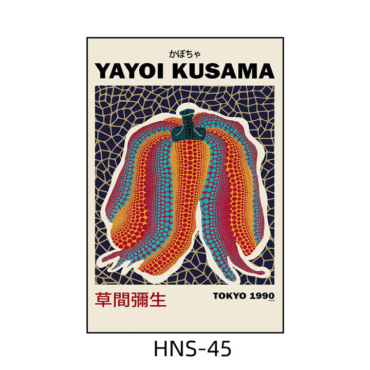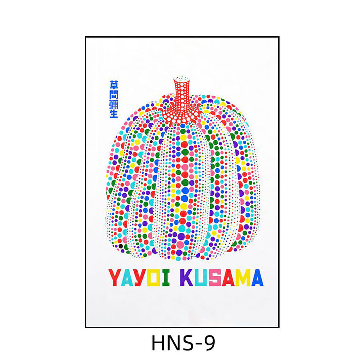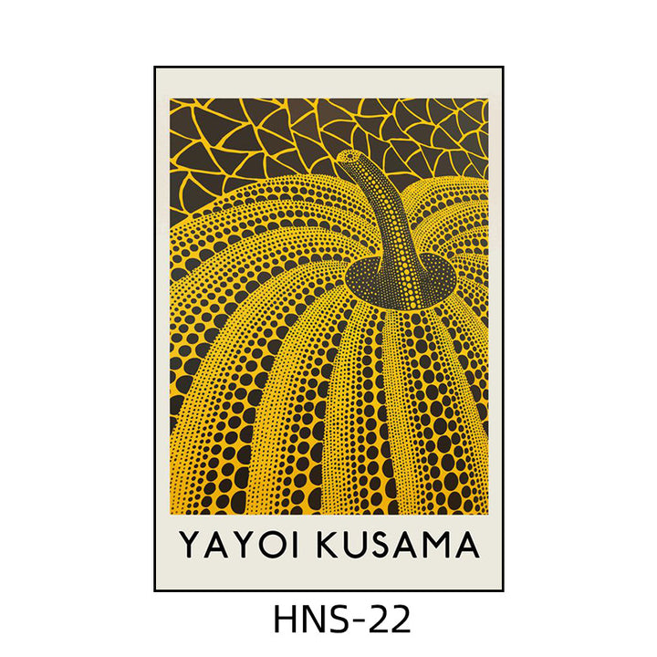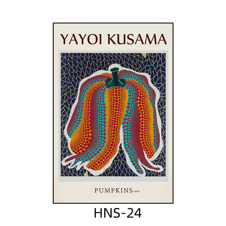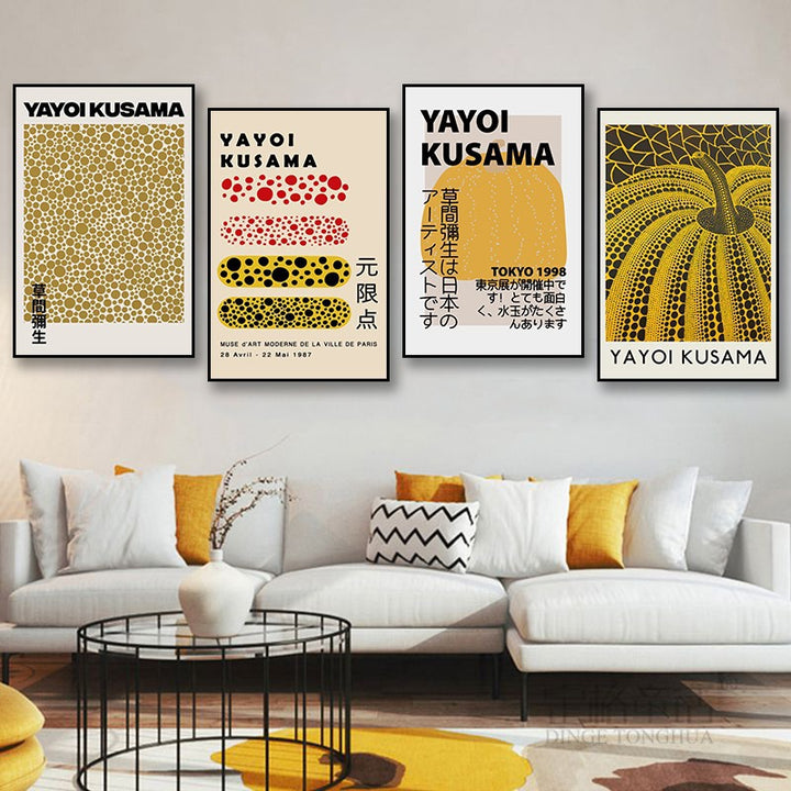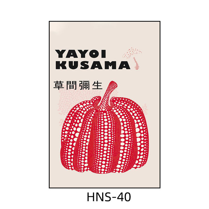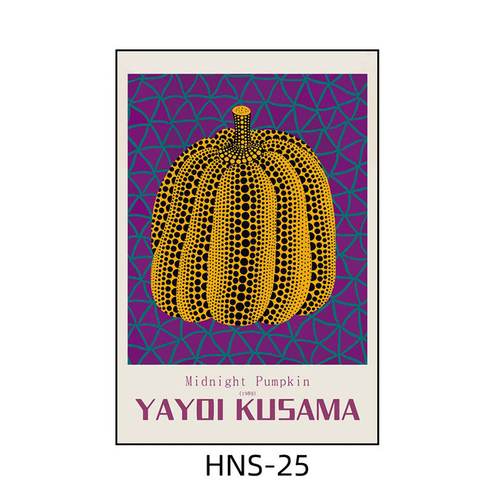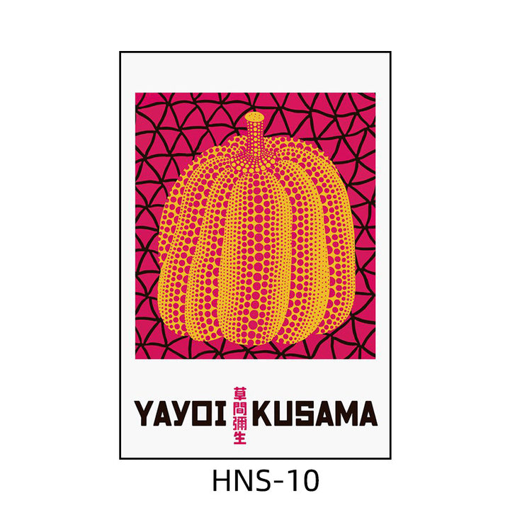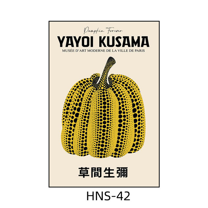 Yayoi Kusama hanging painting polka dot pumpkin niche art mural living room sofa background w...