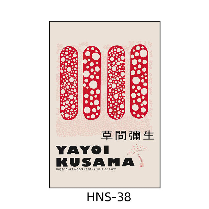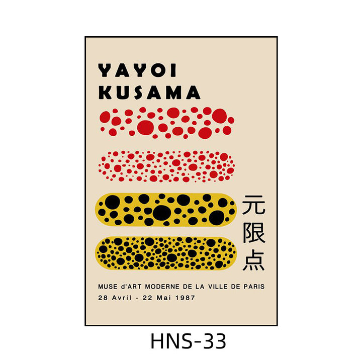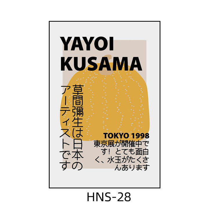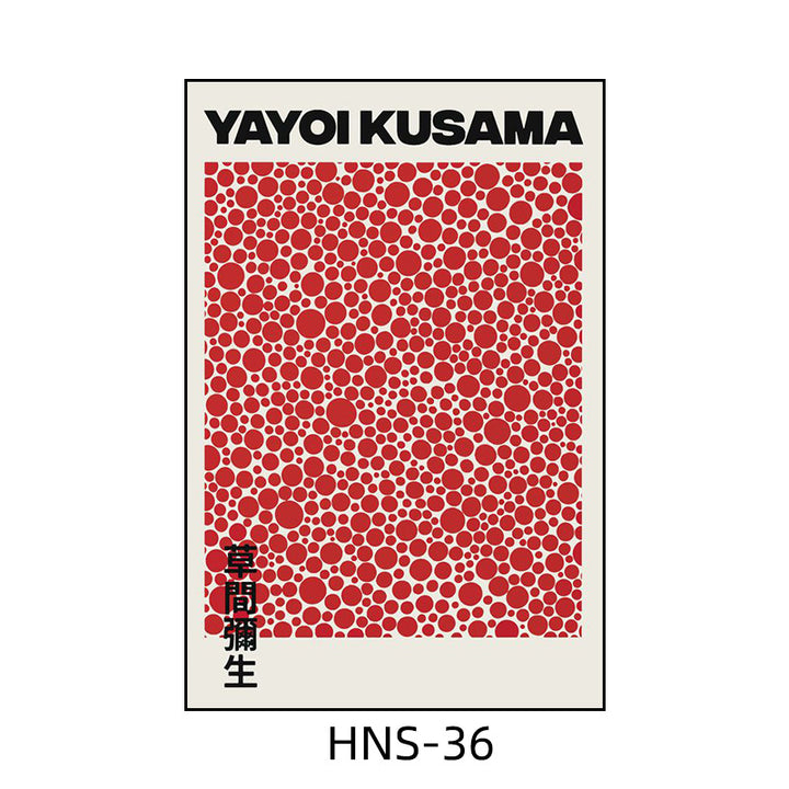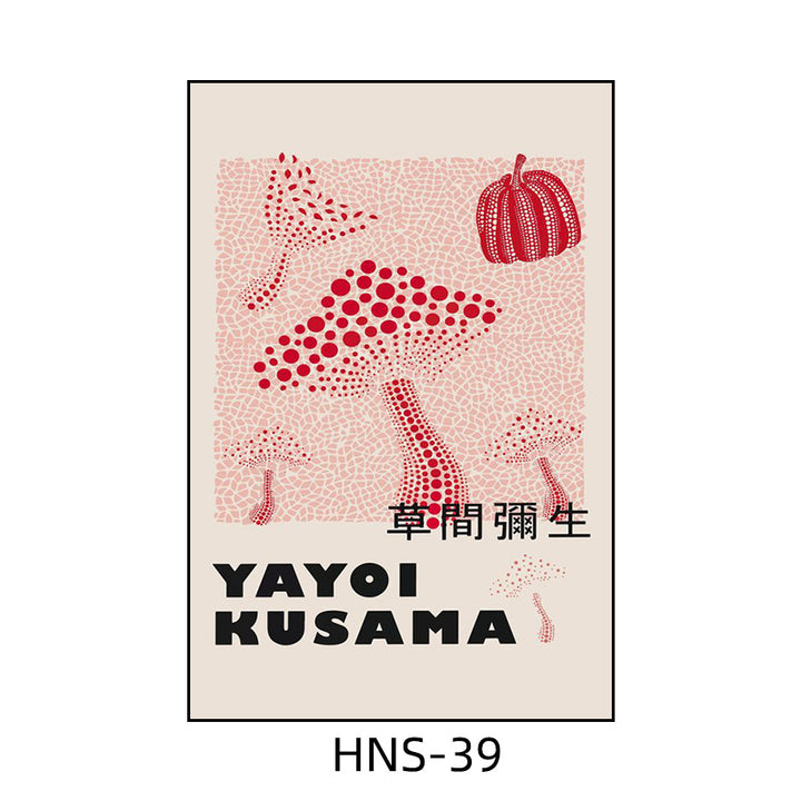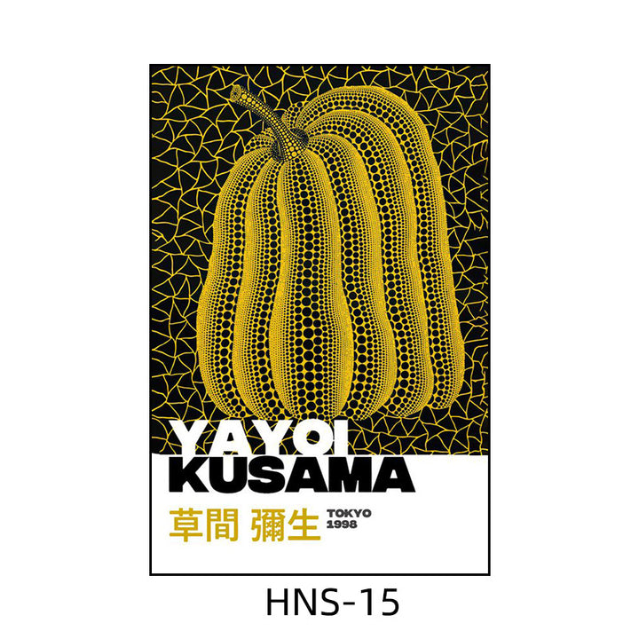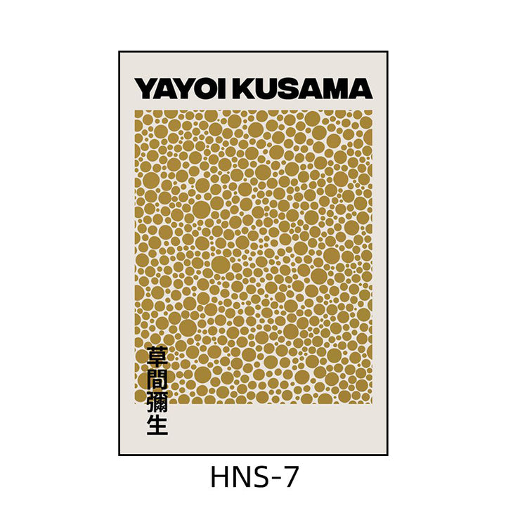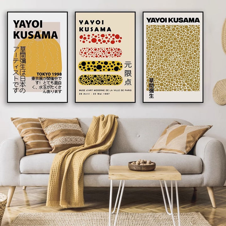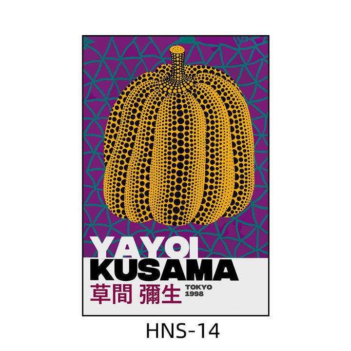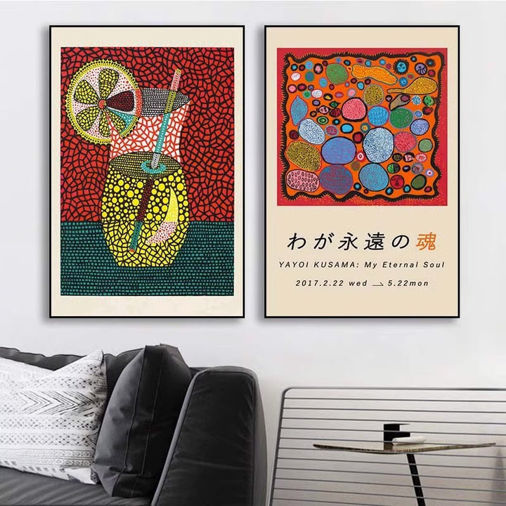 Yayoi Kusama hanging painting polka dot pumpkin niche art mural living room sofa background w...