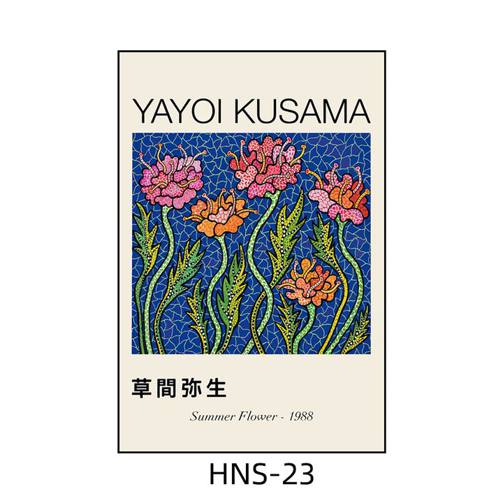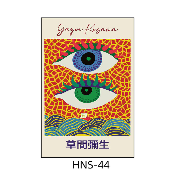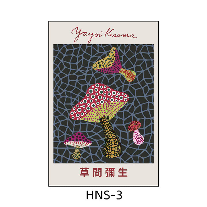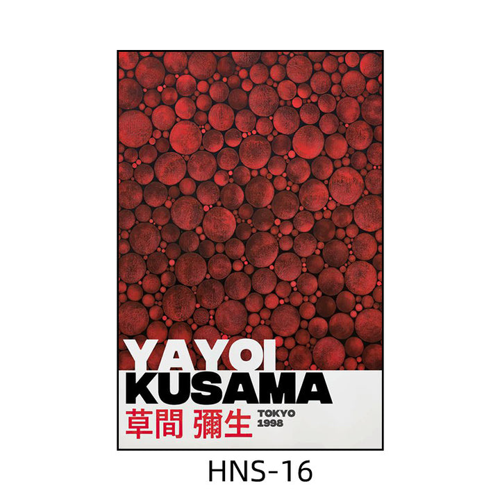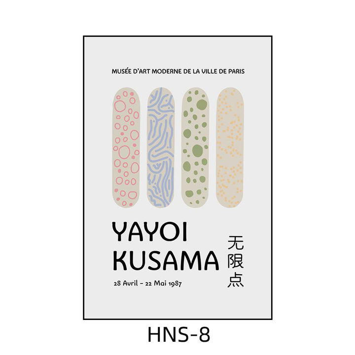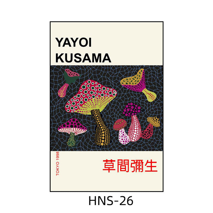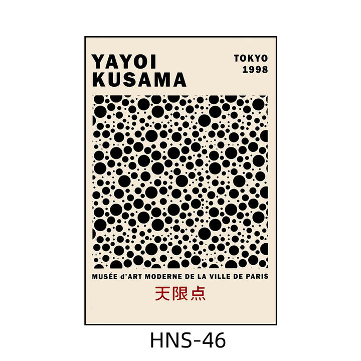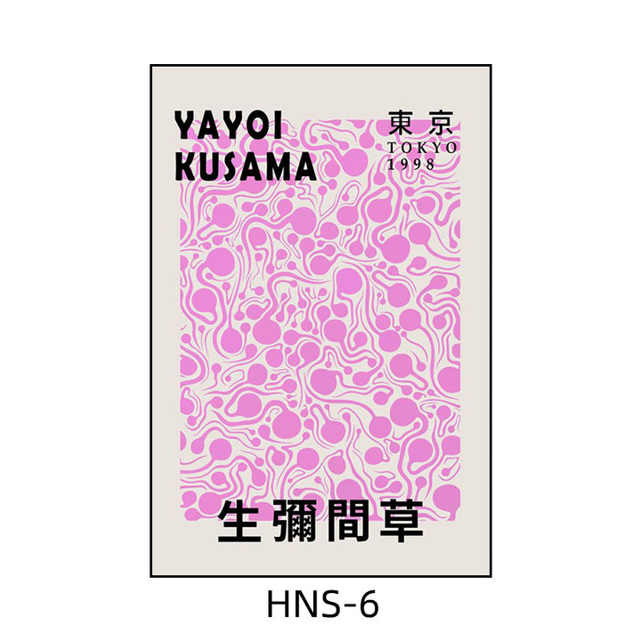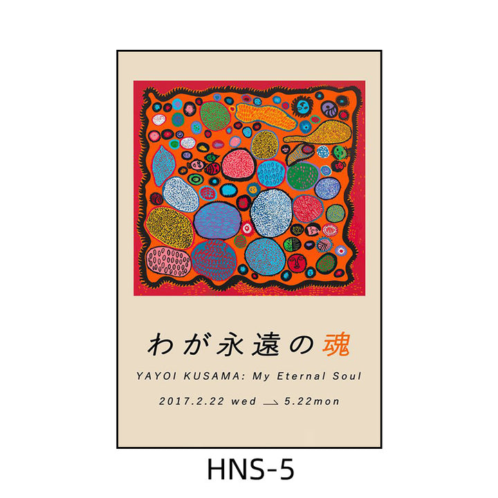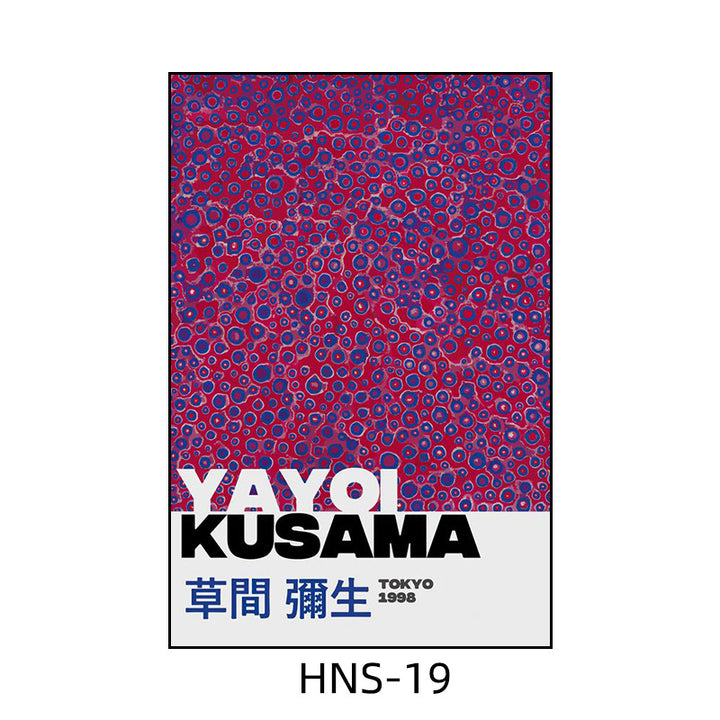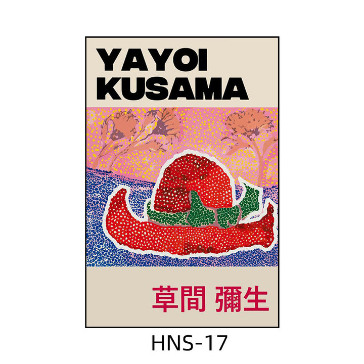 Yayoi Kusama hanging painting polka dot pumpkin niche art mural living room sofa background w...