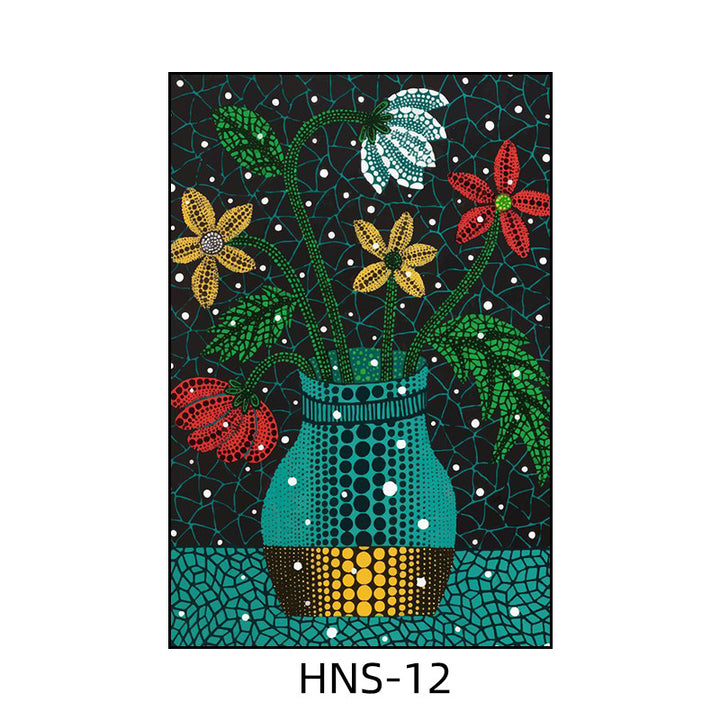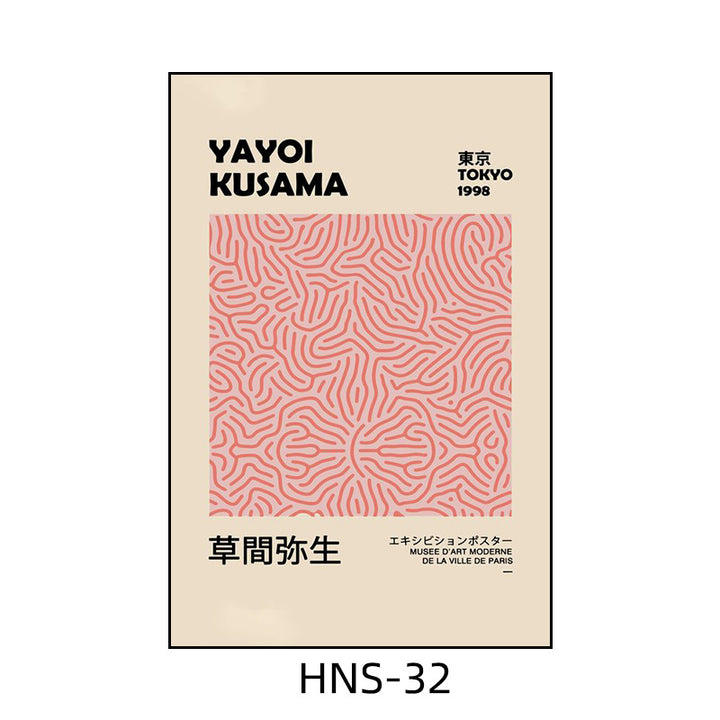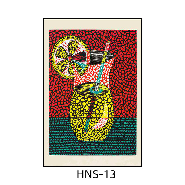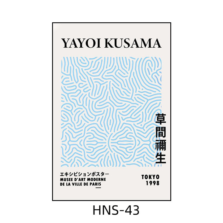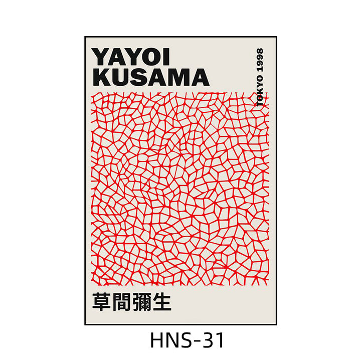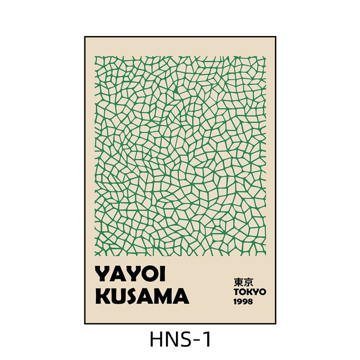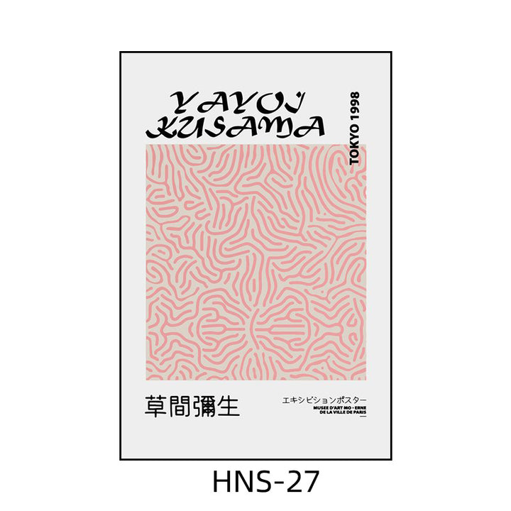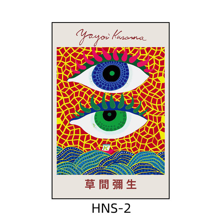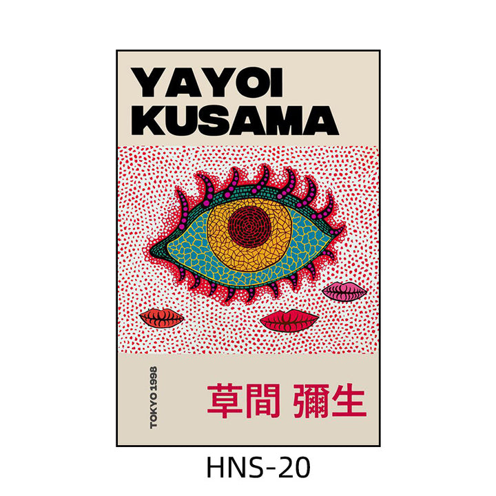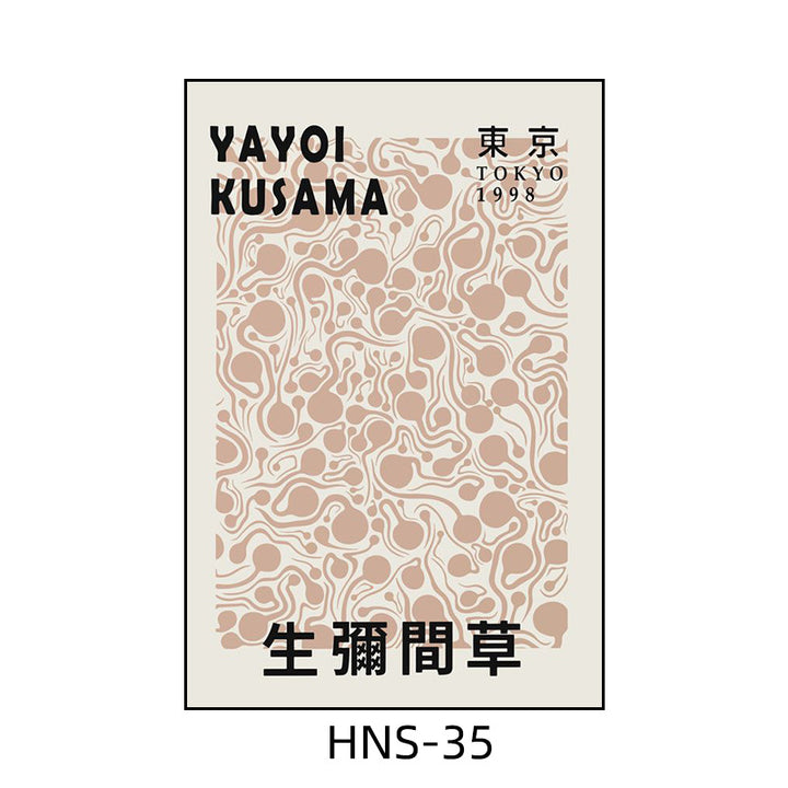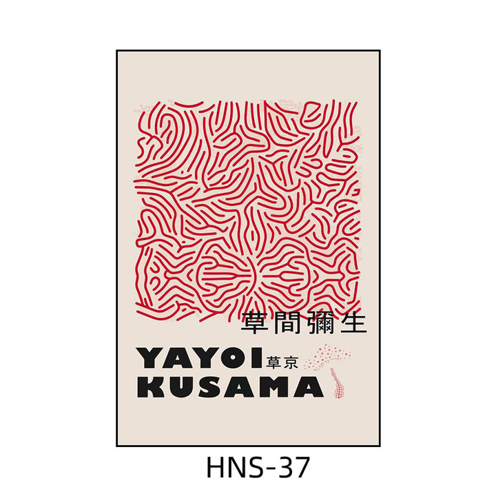Yayoi Kusama hanging painting polka dot pumpkin niche art mural living room sofa background w...