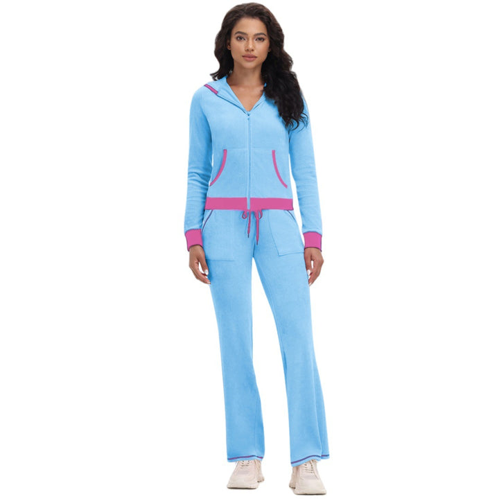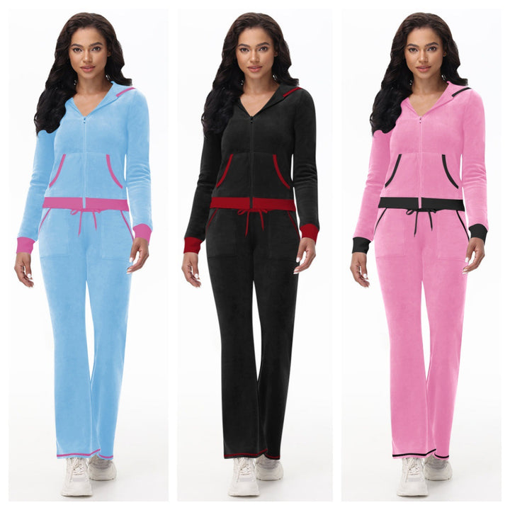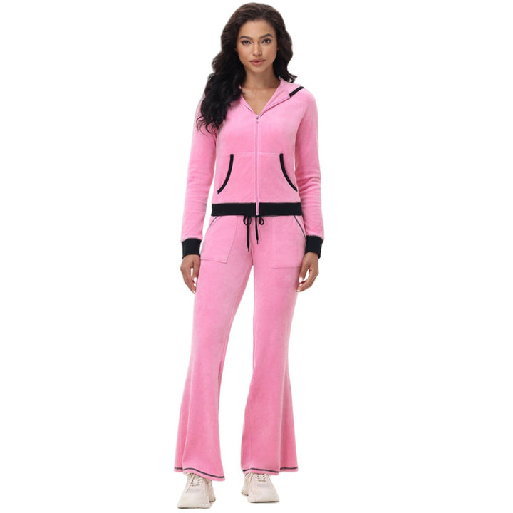 YD-047 European and American women's clothing, 's new models, fashionable and casual German velvet hooded two-piece set, women's clothing