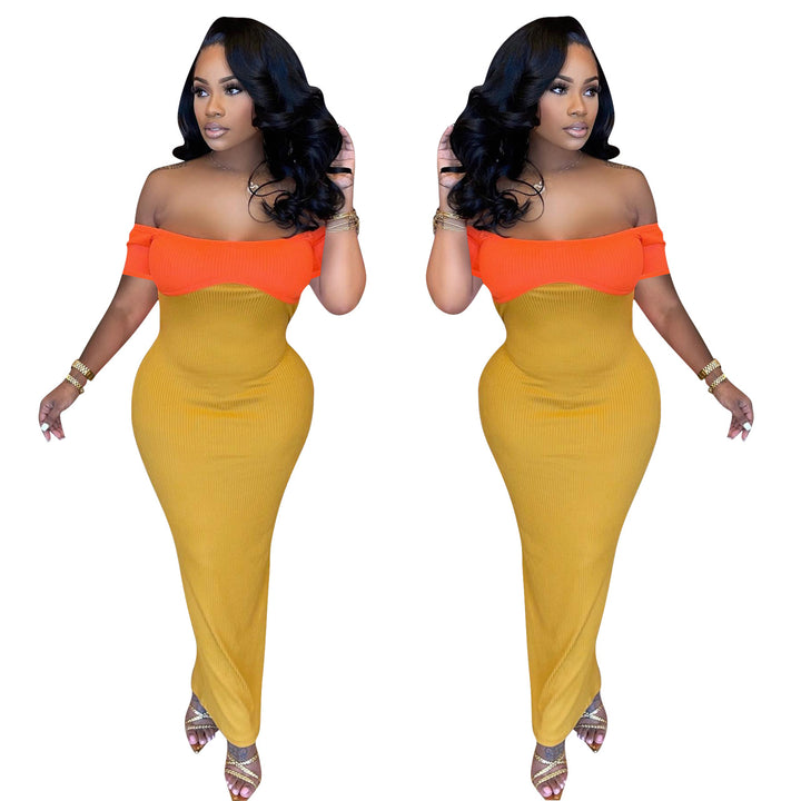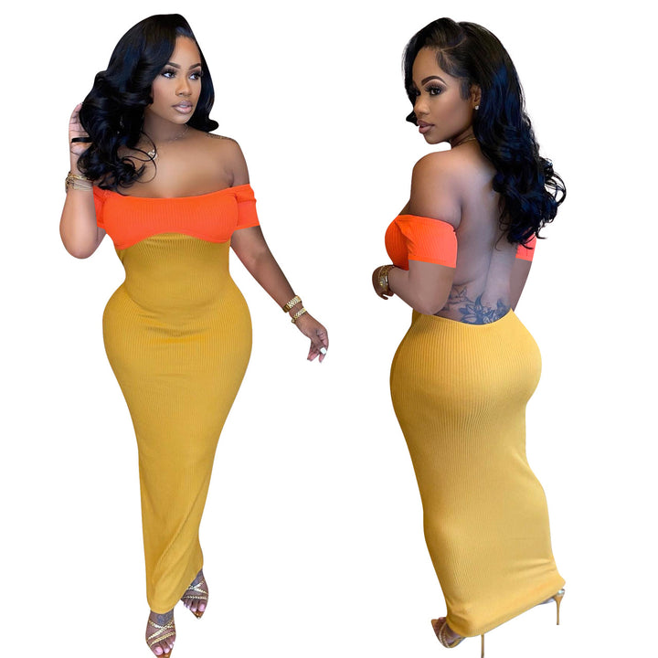 YD8574 special products are not refundable, European and American women's clothing color matching sexy backless dress, women's clothing