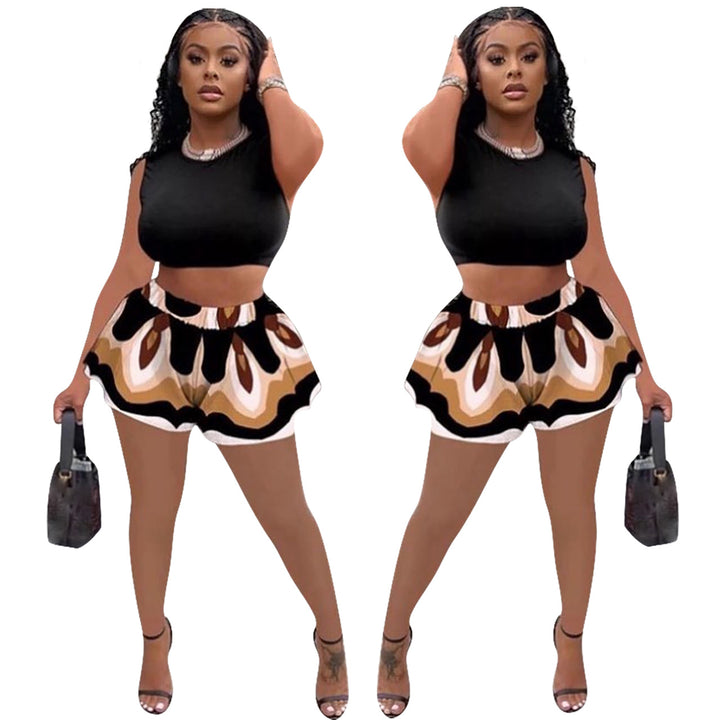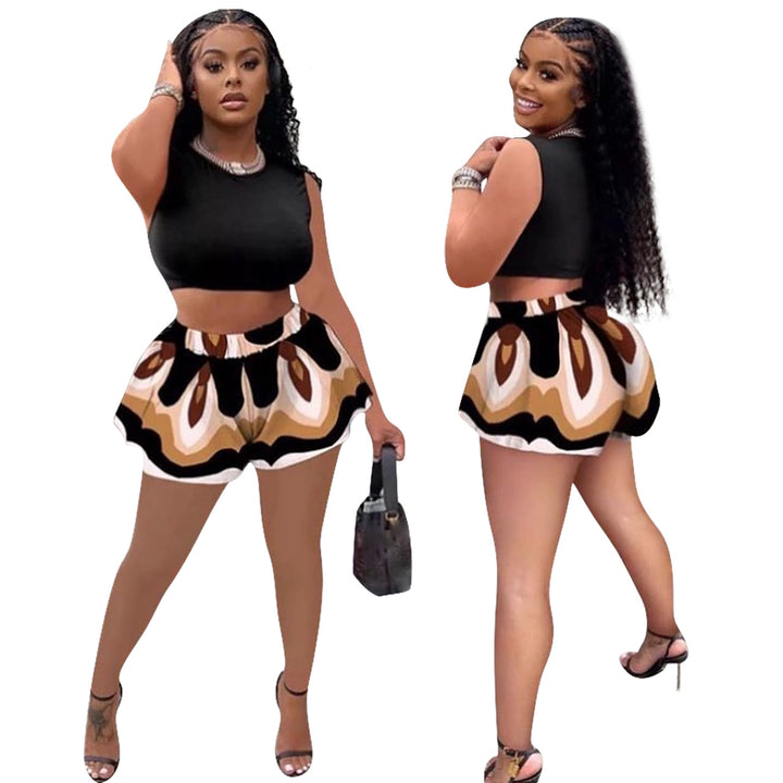 YD8591-B7 special products are non-refundable and non-exchangeable European and American women's clothing, fashionable and sexy waist printing two-...