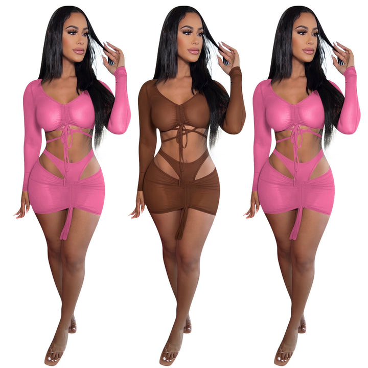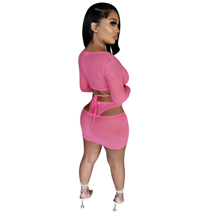 YD8629E4 special products are non-refundable and non-exchangeable. European and American women's clothing fashion perspective mesh strap two-piece set