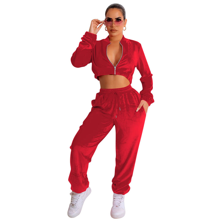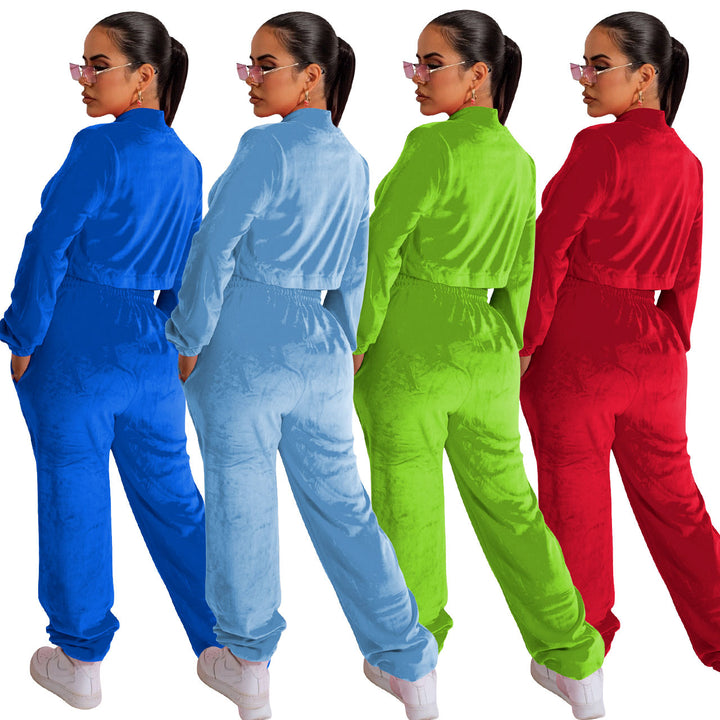 YD8658 European and American women's clothing, 's new models, fashionable waist-exposed velvet, loose wide-leg two-piece set