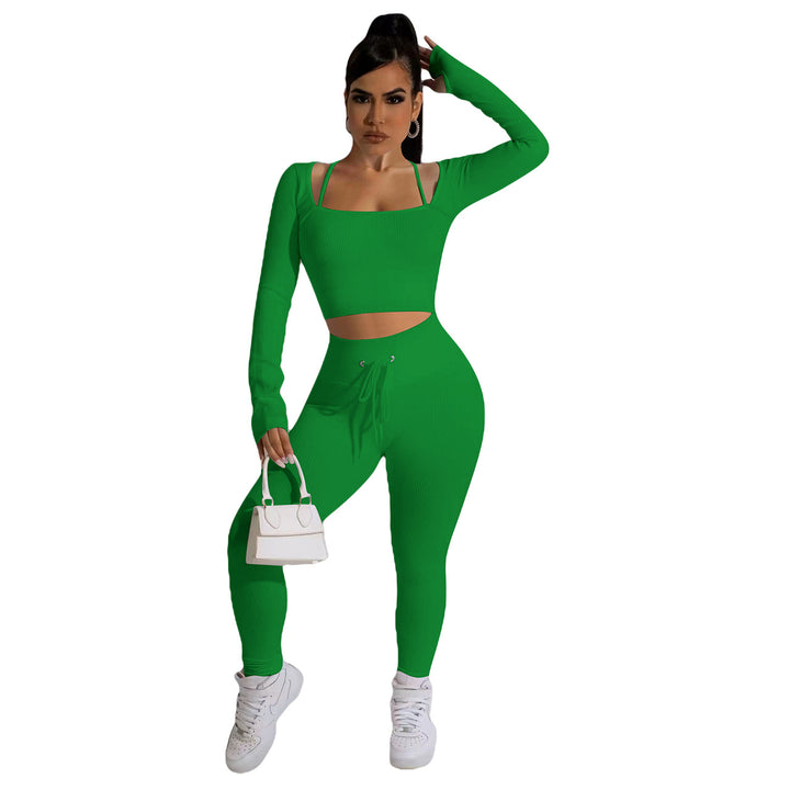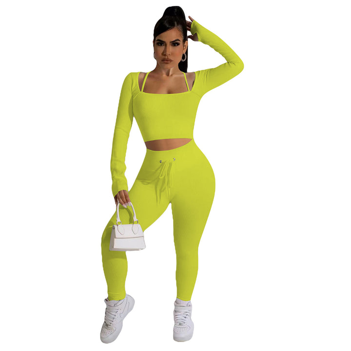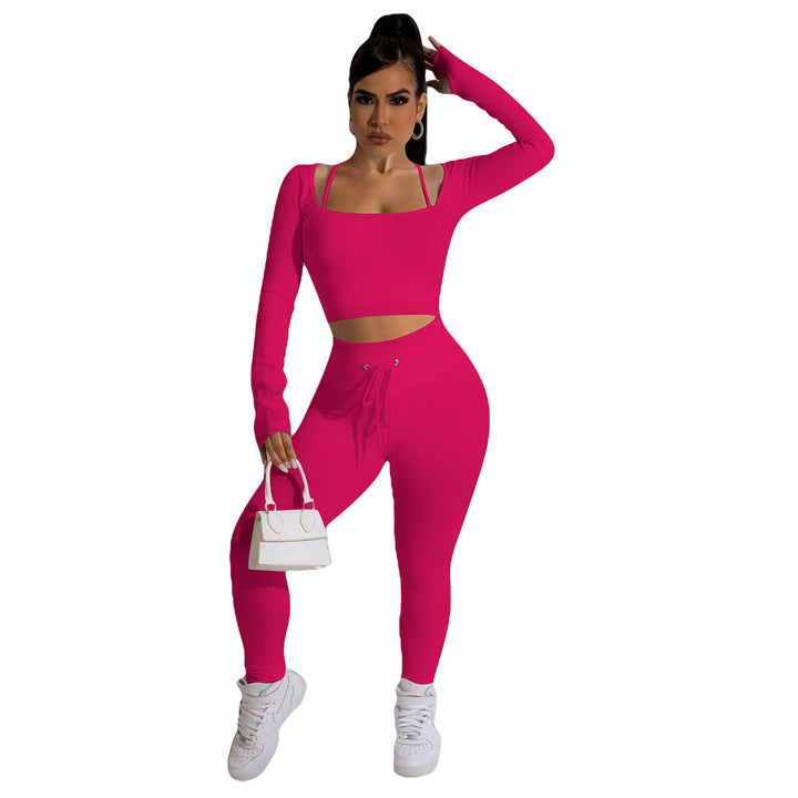 YD8670-D12 European and American women's clothing, new models, fashionable waist, neck square collar two-piece set, women's clothing