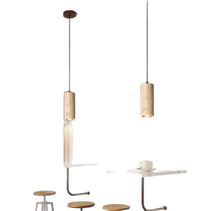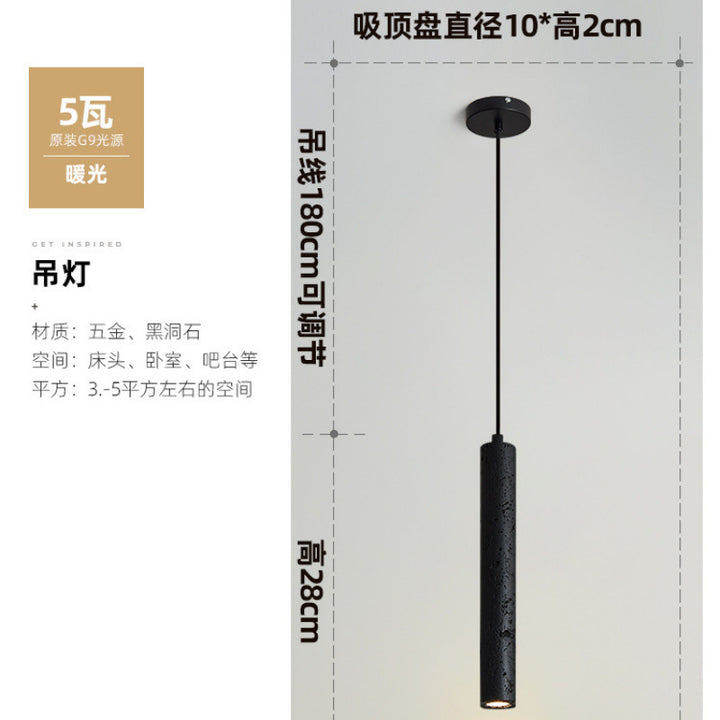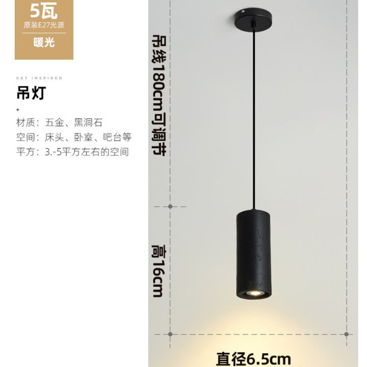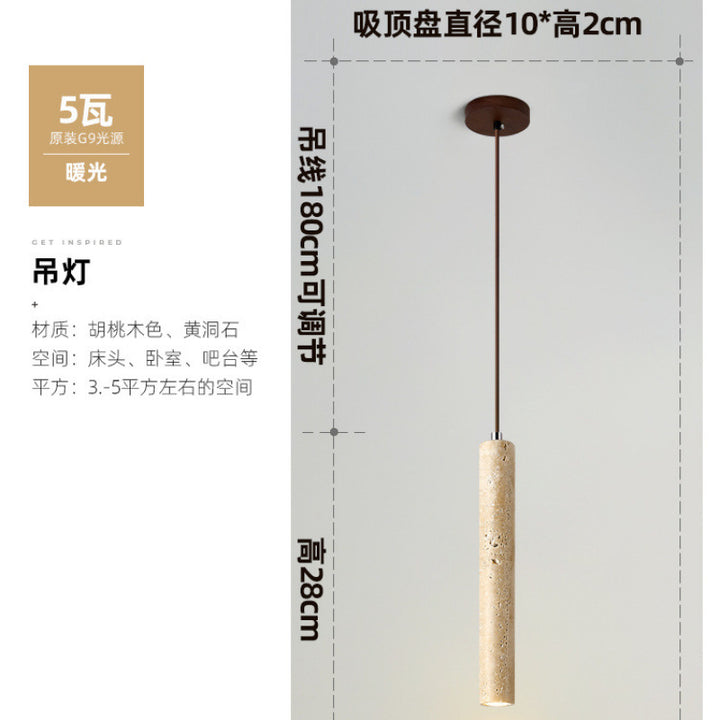 Yellow travertine bedroom bedside chandelier Japanese wabi-sabi retro walnut living room background wall bar hanging line lamp