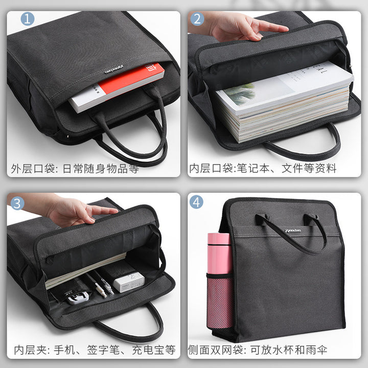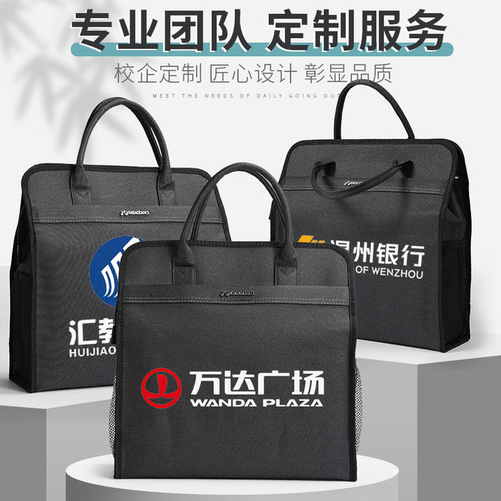 Yiyunchen business briefcase custom logo handbag Oxford cloth vertical version meeting document bag with water cup zipper