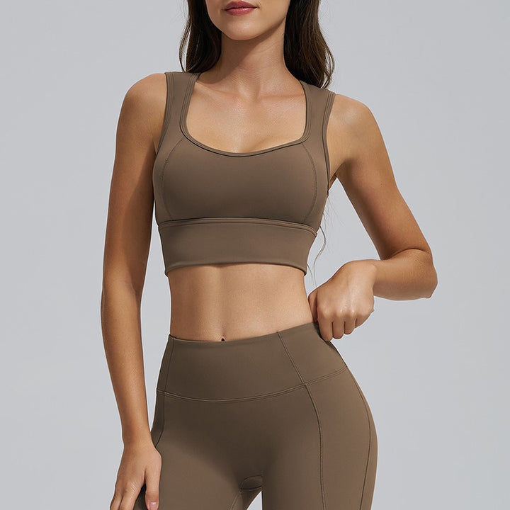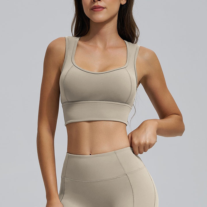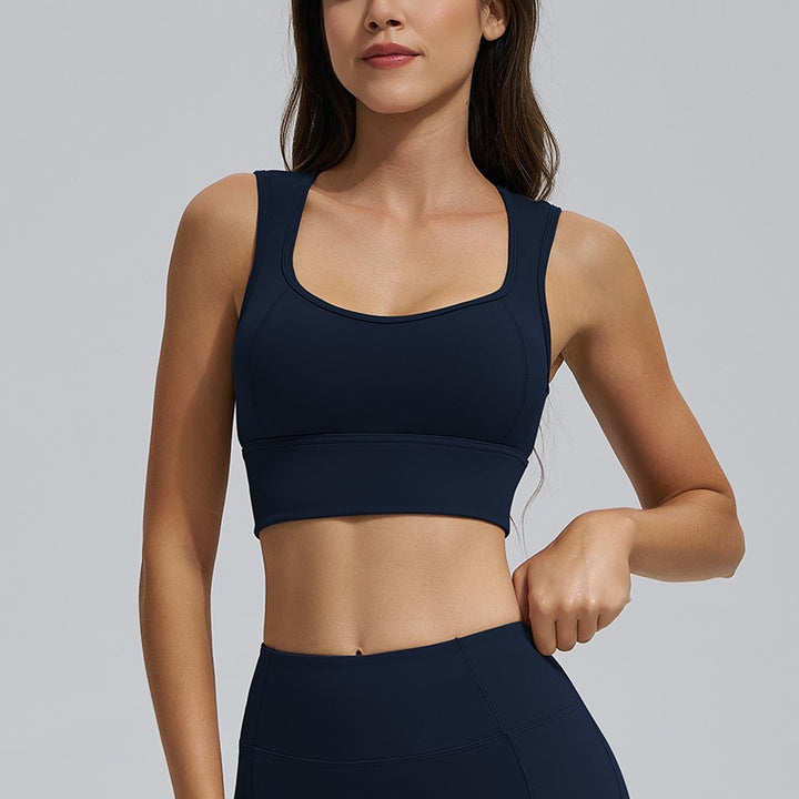 Yoga beauty back vest bra integrated fixed cup high strength shock-proof gathering wide shoul...