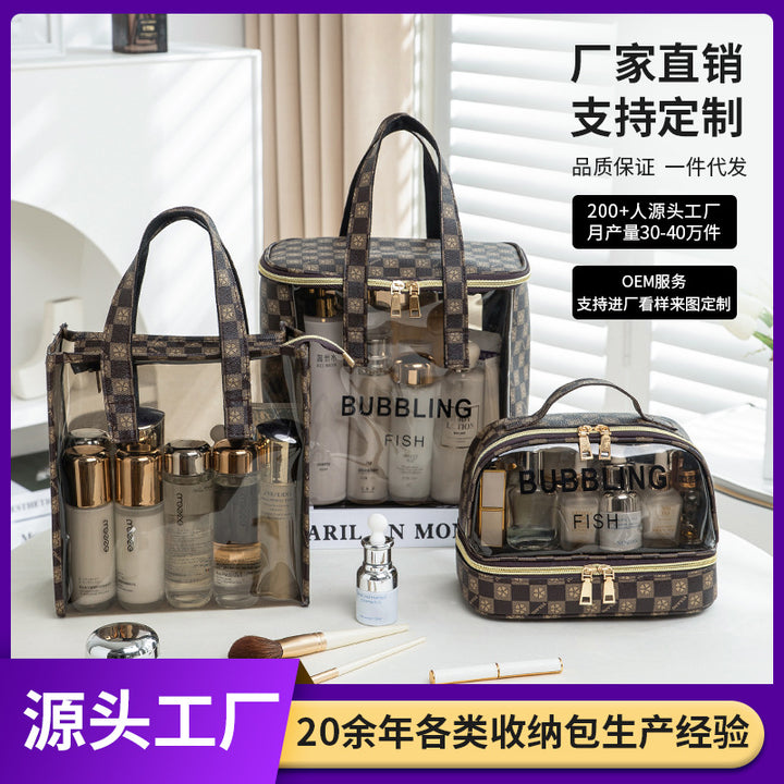 Vintage Checked Flip Bag, Vintage Checked Tote Bag, Retro Checked Double Layer Bag |