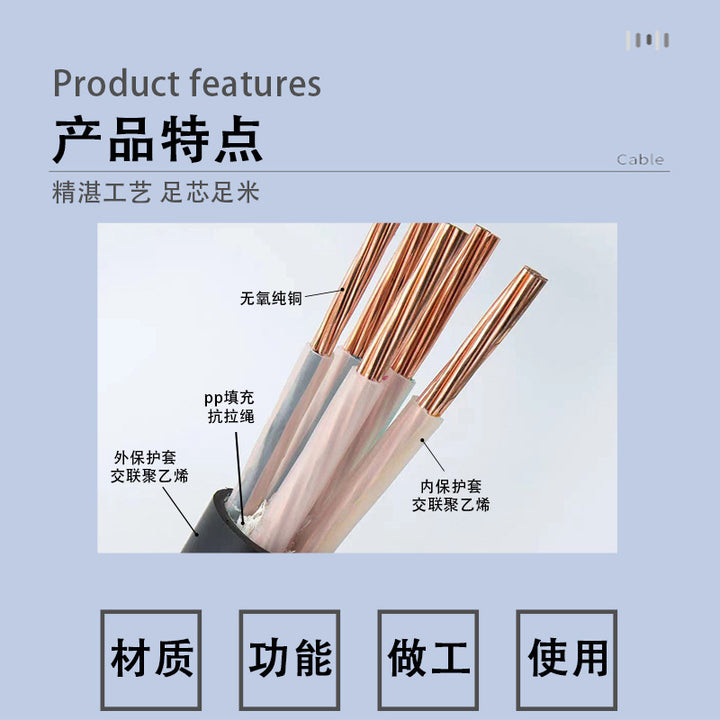 Zhujiang YJV cable national standard pure copper core 3 core wire x2.5/4/6/square sheathed wi...